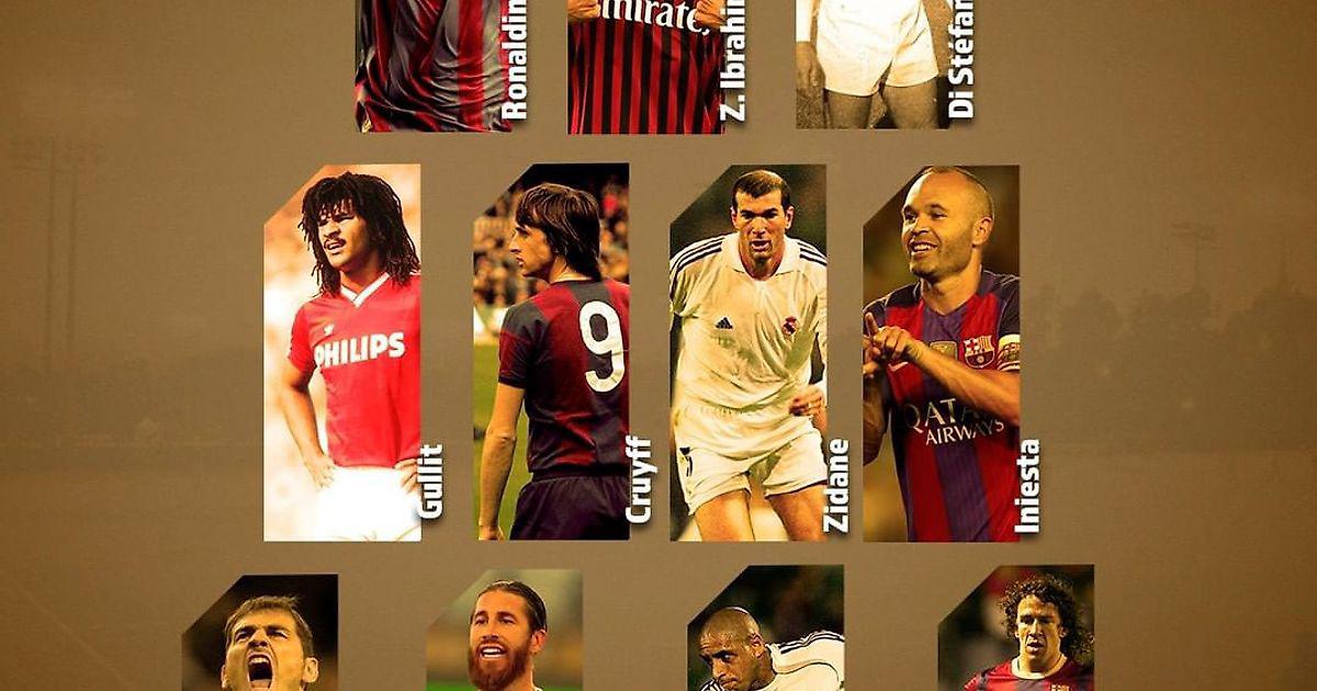 Сборную всех времен от французского издания France Football и две альтернативные, можно посмотреть здесь.