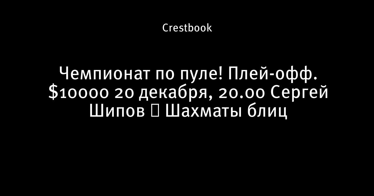 Чемпионат по пуле! Плей-офф. $10000 ⏰ 20 декабря, 20.00 🎤 Сергей Шипов ♕ Шахматы блиц
