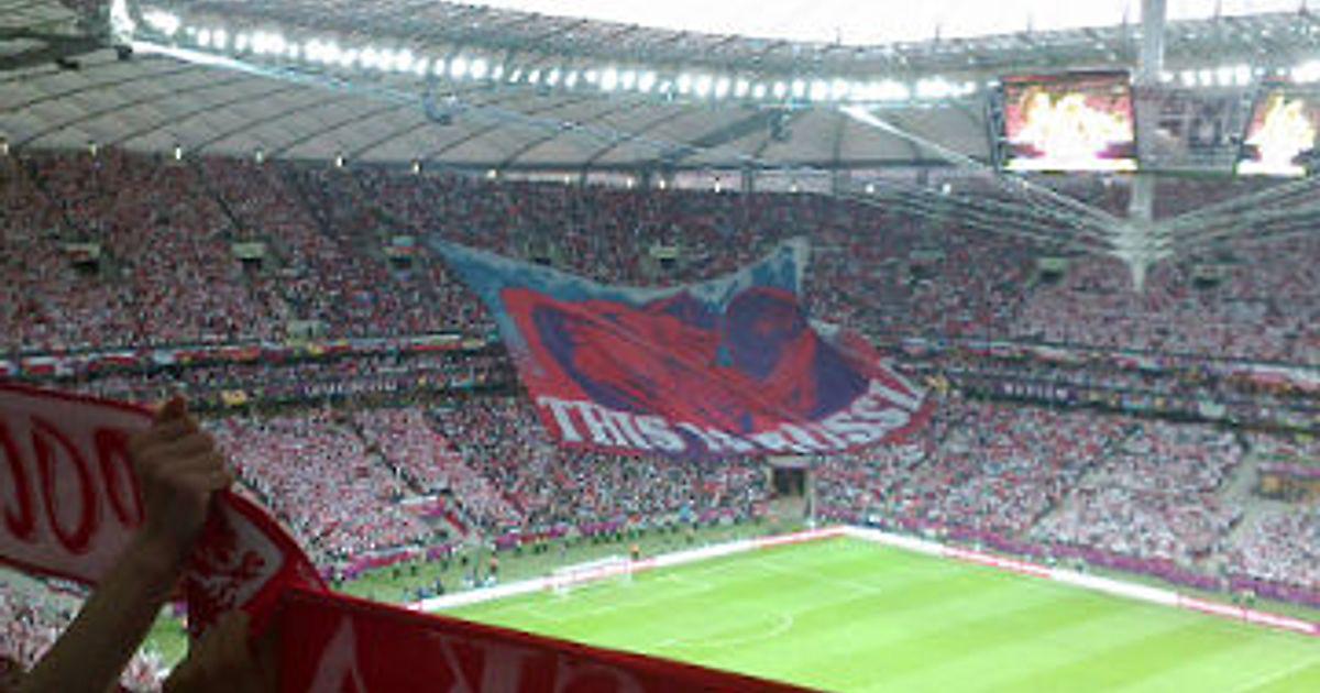 Дуракам везет и мы без особых проблем добрались до стадиона под удивленные взгляды полицейских, смотревших на нас как на чудо-чудное, и толпы фанатов, скандирующих: «Червона-била», «Польска», строки национального гимна. Билеты у нас были на обычную трибуну, в стороне от огромного российского сектора, а вокруг не было ни одного свободного места, все было заполнено польскими болельщиками. Ажиотаж не шел ни в какое сравнение с предыдущем матчем, стадион был вдвое больше и напоминал «Лужники». Все еще оставаясь под чарами предыдущих дней мы возбужденно поглядывали по сторонам, но никого больше с российской символикой не обнаружили. Хорошо хоть рядом оказались вездесущие немцы, обладавшими некоторыми познаниями в русском языке и сохранявшими нейтралитет.