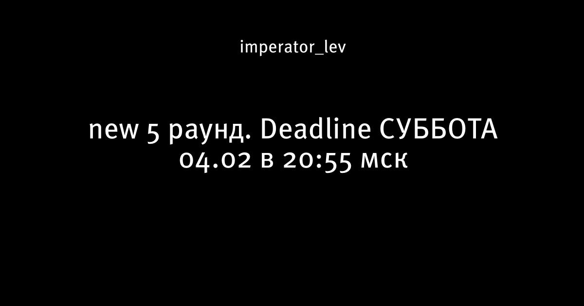 new 5 раунд. Deadline СУББОТА 04.02 в 20:55 мск