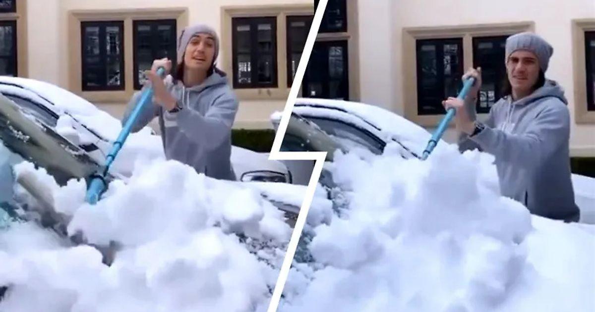 Так что, кажется, Эдинсону приходится привыкать к погоде в Британии: авто Эль Матадора завалило снегом, но он воспринял это с позитивом и принялся за уборку транспортного средства.