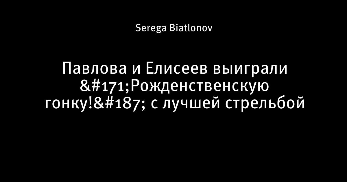 Павлова и Елисеев выиграли "Рожденственскую гонку!" с лучшей стрельбой всего 2 промаха на двоих. Вторыми стали Пройс-Шемп, третьими Херман-Долль. Пусть это всего лишь комерческий старт,так сказать шоу гонка,но все равно после безнадеги нам кубке мира,хоть тут мы смогли победить,хотя не было Норвегии,Франции, но это мелочи.Ключевым фактором в таких гонках всегда является стрельба, и понятное дело,что Павлова и Елисеев для этой гонки были выбраны не случайно, кто бы что не говорил,но в нашей команде это пока одни из лучших стрелков,да и формат такой очень подходит Павловой и Елисееву. Но все равно после неудач на кубке мира, сегодняшняя победа это такой приятный бонус и отличный подарок для Российских болельщиков в предверии Нового года!