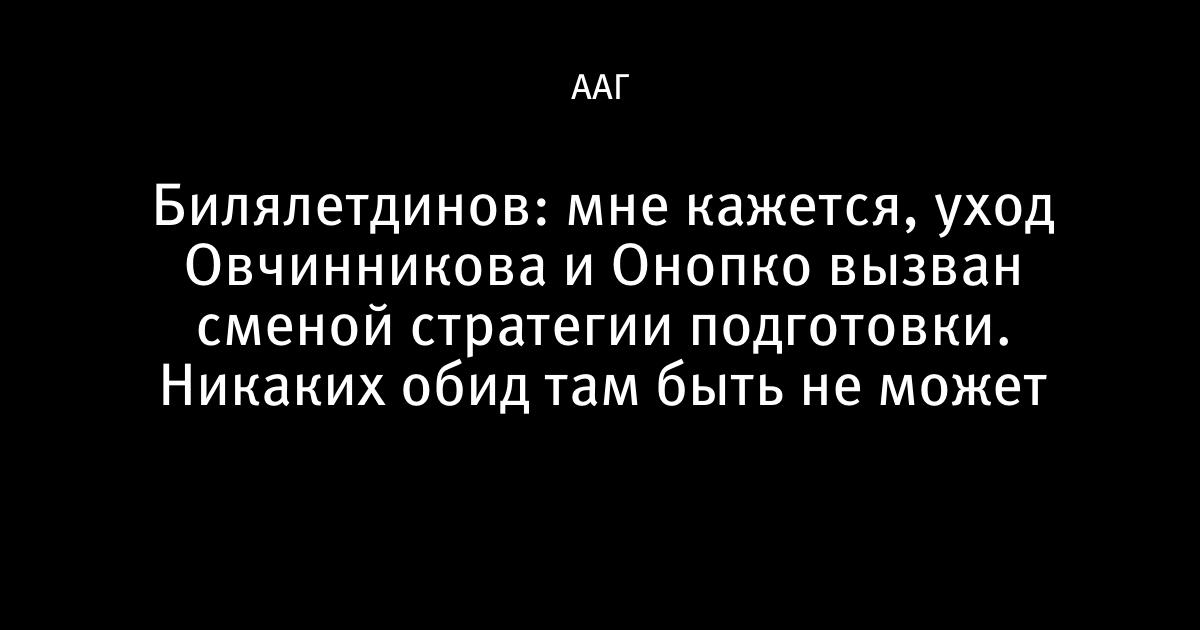 Билялетдинов: мне кажется, уход Овчинникова и Онопко вызван сменой стратегии подготовки. Никаких обид там быть не может