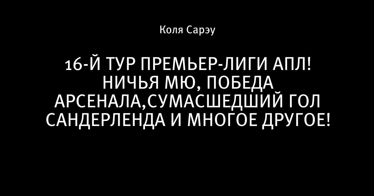 16-Й ТУР ПРЕМЬЕР-ЛИГИ АПЛ! НИЧЬЯ МЮ, ПОБЕДА АРСЕНАЛА,СУМАСШЕДШИЙ ГОЛ САНДЕРЛЕНДА И МНОГОЕ ДРУГОЕ!