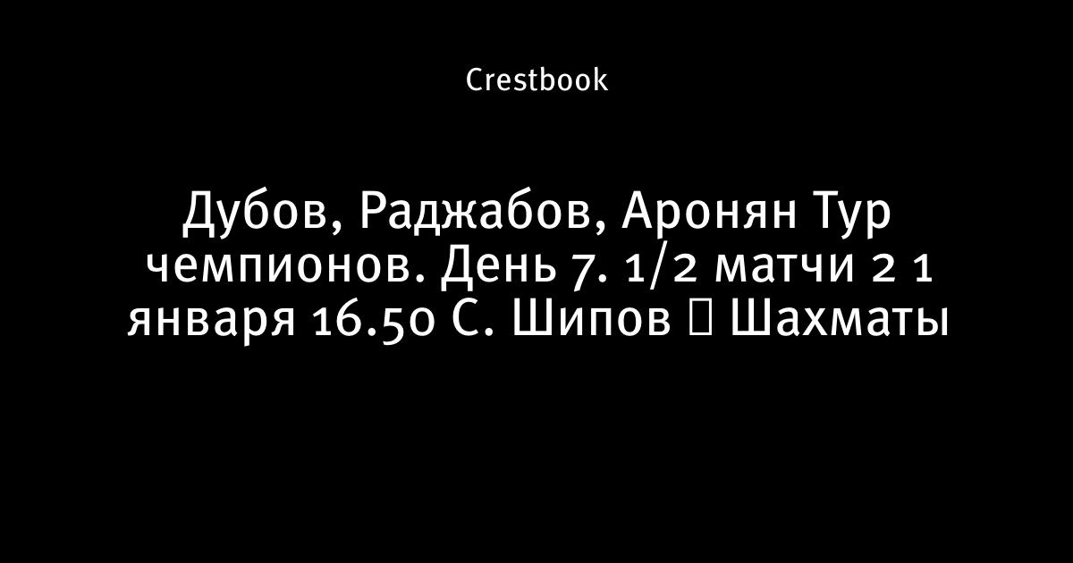 Дубов, Раджабов, Аронян 🏆 Тур чемпионов. День 7. 1/2 матчи 2 ⏰ 1 января 16.50 🎤 С. Шипов ♕ Шахматы