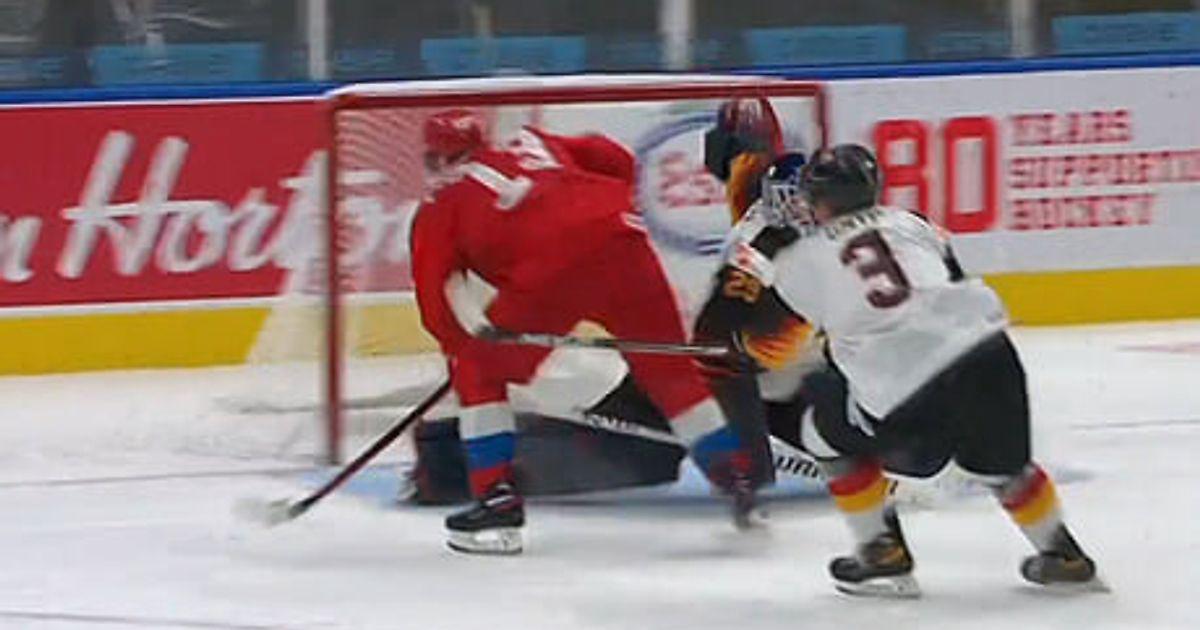 Сборная России не стала долго возиться с Германией в четвертьфинале и открыла счет в первом же периоде – забил Василий Пономарев. Правда, гол вышел неожиданным – забили не в большинстве или после позиционной атаки, а в красивом отрыве в меньшинстве.