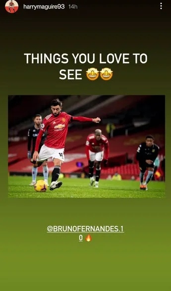 Харри Магуайр проявил любовь к Бруну Фернандешу в Instagram после еще одного отличного выступления полузащитника в победе над «Астон Виллой» со счетом 2:1.
