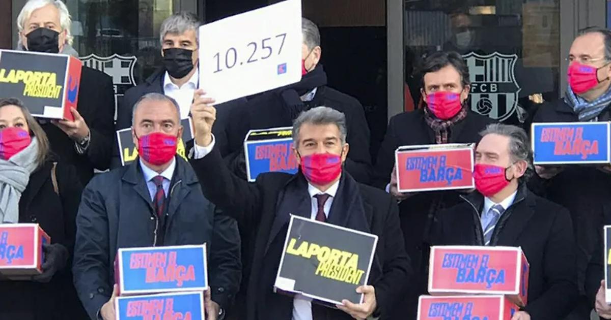 Лапорта прибыл на Камп Ноу с 10 257 подписями, которые он собрал для регистрации на президентских выборах.