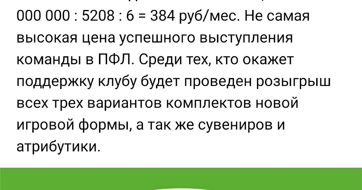 Несколько часов назад ФК "Знамя" Ногинск опубликовал в социальных сетях постах о нехватке денег для проведения второй части сезона. Клуб предложил 5 тысячам болельщиков делать ежемесячный взнос в размере 384 рубля в месяц для сбора 12 миллионов рублей. На мой взгляд это нормальный вариант выхода из сложившейся ситуации, но на месте руководства клуба я бы немного изменил эту стратегию. Во-первых, если клуб собирает деньги с фанатов, то он должен четко понимать, что люди, как минимум имеют право понимать на что пойдут эти средства. Формулировка "успешное выступление команды в ПФЛ" мягко говоря не мотивирует открыть Сбербанк Онлайн и сделать перевод. Клуб, на мой взгляд, должен открыть свою бухгалтерию. Я не говорю, что нужно опубликовать весь фонд оплаты труда персонала клуба, тренерского штаба и футболистов, но обозначить цифры, которые на это будут потрачены точно нужно. Но это не главное. Вместо простой просьбы о помощи клуб мог бы сделать иначе. Клубная карта ФК "Знамя". Эта карта выдаётся каждому желающему болельщику и жителю Ногинска и несёт в себе....скидки для использования в различных сферах деятельности города...25 % на атрибутику клуба, 10 % на покупку цветов, 5 % на продукты в сети "Магнит" или "Пятерочка", 10 % на посещение спортивных сооружений города (футбольные поля, плавание, тренажерные залы и т.д.) и 10 % на пользование услуг салонов красоты или спа.... перечислять можно без конца. Тут всё зависит от фантазии и деловых навыков персонала клуба. И да, эта карта стоит 384 рубля в месяц или 3,5 тысячи рублей в год. Таким образом клуб решает несколько стратегически важных задач: закрывает вопрос с финансированием, налаживает партнерство с малым и средним бизнесом в своём городе, повышает лояльность болельщиков и, самое главное, становится более привлекательным для спонсорства.. Всё оказывается очень просто...нужно лишь желание