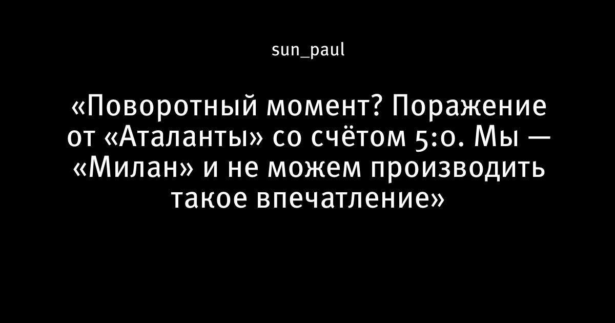 «Поворотный момент? Поражение от «Аталанты» со счётом 5:0. Мы — «Милан» и не можем производить такое впечатление»