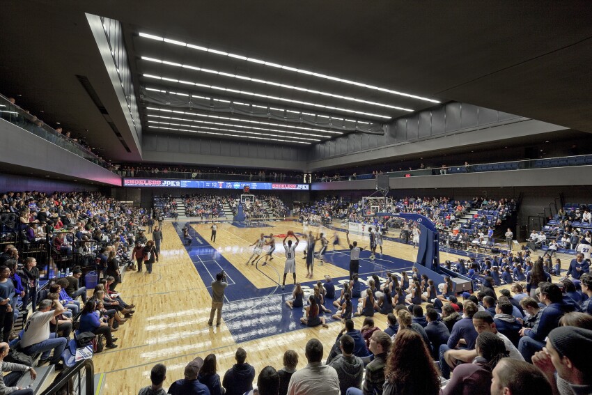 Один из самых престижных вузов Америки, который входит в Лигу плюща, базируется в Нью-Йорке (а не в Вашингтоне, как можно было бы подумать). Из-за того, что он находится в самом центре, на Манхэттене – в паре кварталов от Центрального парка и Гарлема, здесь дорогая земля, поэтому все спортивные штуки здесь находятся под землей. Здесь есть зал на 2700 человек для баскетбола и волейбола, бассейн, залы для борьбы и фехтования (вмещают по 300-500 человек).