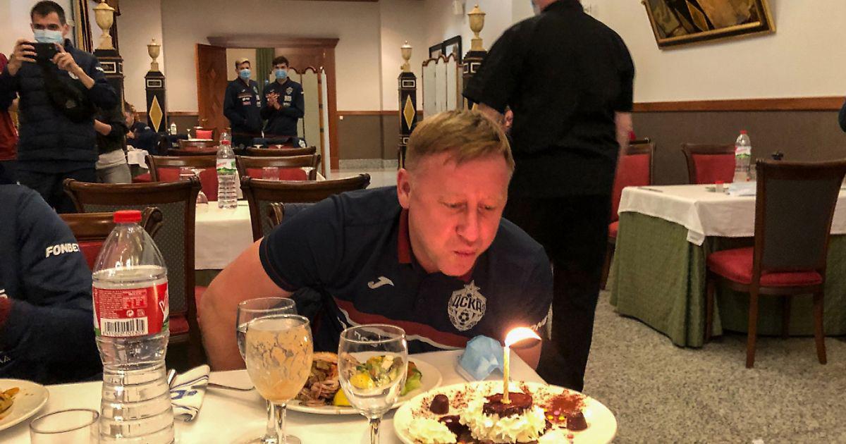 Он принимал поздравления с 46-летием до, после и даже во время двух тренировок, которые провела сегодня команда. По окончании занятий именинник ответил на вопросы pfc-cska.com. — Александр Владимирович, как вас чествовали ребята, можно было видеть в ходе прямой трансляции на CSKA TV. Что было еще? — Утром Виктор Михайлович, Василий Березуцкий и те, кто был на завтраке, сказали пару добрых слов. Потом похлопала в кругу команда. Я привык, что дни рождения всегда проходят на сборах, поэтому мысли в первую очередь о работе. Поздравления продолжают приходить. Особенно запомнилось одно — его автор обратил внимание на то, что совпали 21-е число, 21-й год и 21-й век. — А ведь действительно. Значит, все должно для вас сложиться хорошо? — Будем надеяться, что такие цифры к счастью, к успеху (улыбается). — Как оцените работу команды в начале сборов? — Четвертый день тренировок — это переломный момент, после этого обычно получается полностью войти в работу. В целом видно, что все стараются, добросовестно выполняют все задания, никого нельзя упрекнуть в безволии. Нас это радует. — Карантинные ограничения сильно сказываются на работе? Марио, Чиди, другие ребята говорят, что все хорошо… — Я тоже считаю, что они ни на что не влияют. Одно дело если бы мы приехали сюда отдыхать, а по работе ограничений нет. Мы хорошо тренируемся, восстанавливаемся, питаемся. В этом плане нет никаких проблем. Надеемся, что и со спаррингами все будет нормально, обойдется без форс-мажора. — Какие у вас ожидания от второй части сезона? — В таком клубе, как ПФК ЦСКА, задачи перед командой ставятся самые высокие. Тут все очевидно. Наша цель — только вперед, только наилучшие результаты. Пока есть шансы быть на первом месте, будем за это бороться. Пока есть возможность выиграть Кубок, будем ребят нацеливать на это. — Возвращаясь к вашему дню рождения — в прошлом году парни весь день вас «травили», где, мол, собирается команда вечером. Сейчас вам проще: с сегодняшнего дня рестораны в Испании закрыты… — Мне проще, но отметить день все же как-нибудь надо. Учитывая то, что всем нужно соблюдать спортивный режим, а мы при этом базируемся недалеко от моря, нашли такой выход — дополнительно заказали ребятам на ужин побольше морепродуктов.