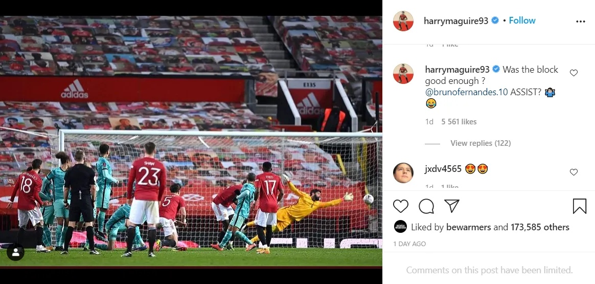 «Заслон был достаточно хорош? @ Brunofernandes.10 ASSIST?» Позже добавил Магуайр.