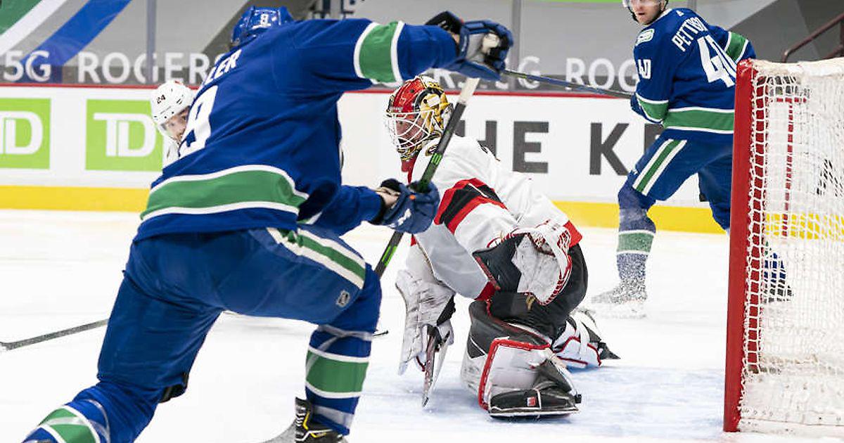 "Ванкувер Кэнакс"-"Оттава Сенаторз" 5:1.Джей-Ти Миллер набрал 3 очка (2+1),Тайлер Мотт забросил 2 шайбы,Элиас Петтерссон набрал 2 очка (1+1),Джей Бигл и Куинтон Хьюз отдали по 2 результативные передачи,Тэтчер Демко отразил 42 броска.