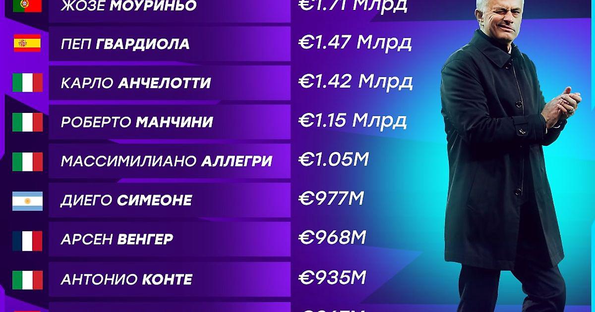 Топ— 10 тренеров по количеству потраченных денег на трансферы