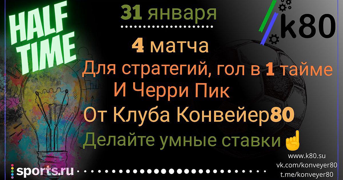Сегодня Воскресение и 4 матча, из отбора аналитически информационного сервиса Конвейер 80, как обычно, рандомно, выбраны и опубликованы для всех желающих заработать и познакомиться с нами. Средний процент прохода событий, по отборам чуть выше 79% на данный момент. Участники закрытого клуба, зарабатывают, применяя стратегии и алгоритмы на отборах и ботах. Вариантов дохода, достаточно много и каждый может найти то, что ему по душе.