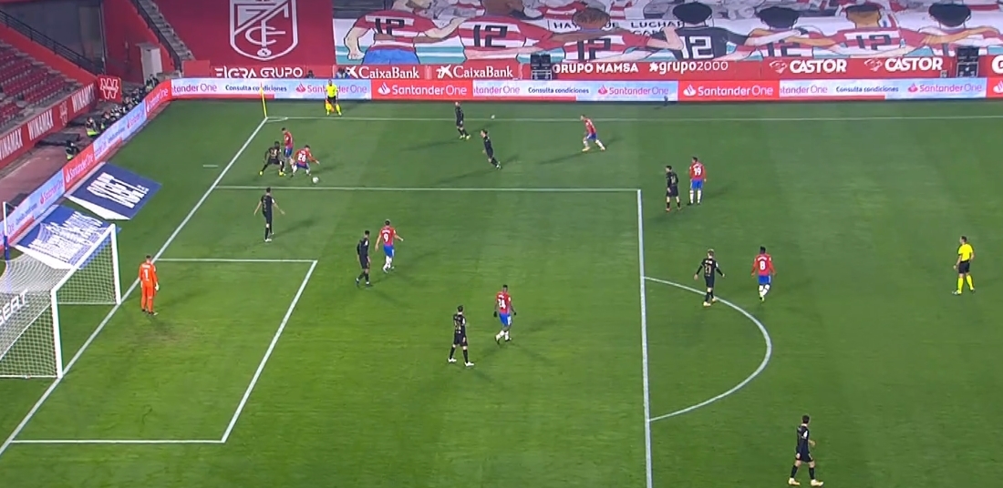 Умтити не справился с прессингом "Гранады" и подарил мяч сопернику, после чего "Гранада" открыла счет.