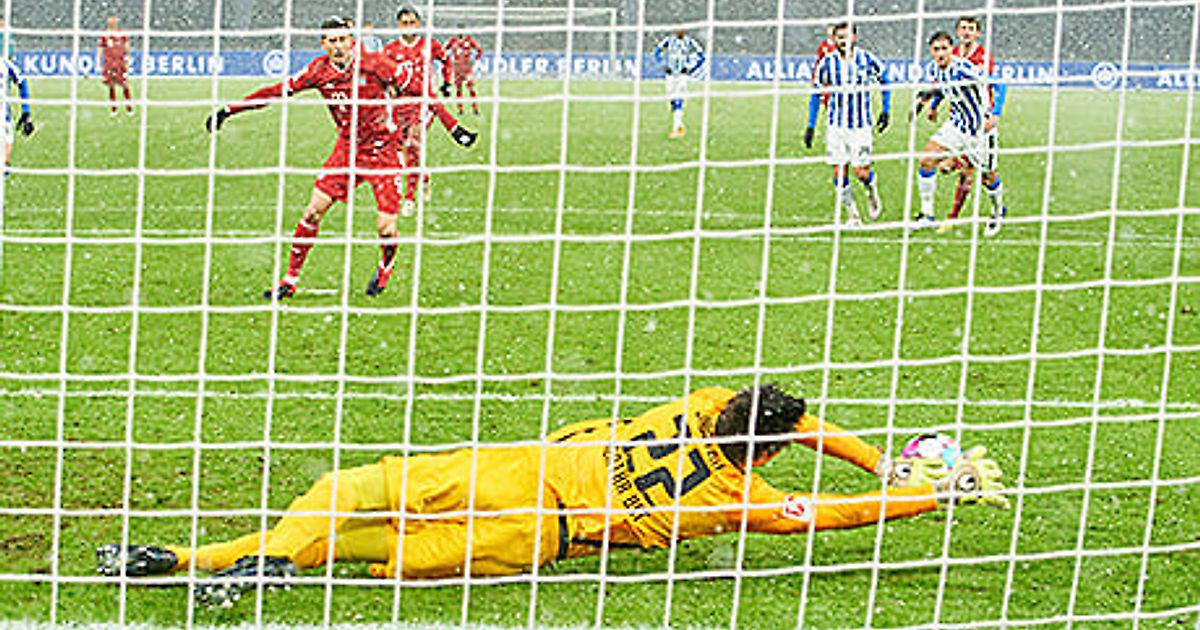 В Бундеслиге в пятницу вечером произошло невероятное событие – кто-то отбил пенальти от Роберта Левандовского. Герой – вратарь берлинской «Герты» Руне Ярстейн. Он сам на 10-й минуте по неосторожности завалил в штрафной Лероя Сане, а потом потащил удар польского нападающего с точки. Вот так это было.
