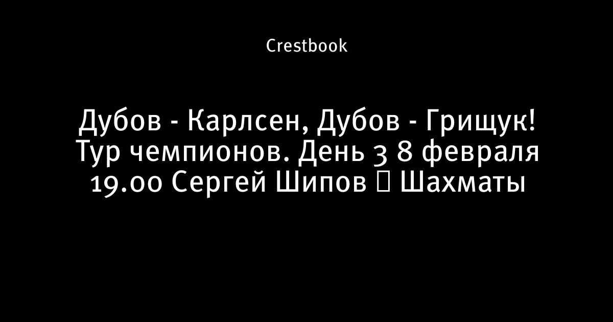 Дубов - Карлсен, Дубов - Грищук! 🏆 Тур чемпионов. День 3 ⏰ 8 февраля 19.00 🎤 Сергей Шипов ♕ Шахматы