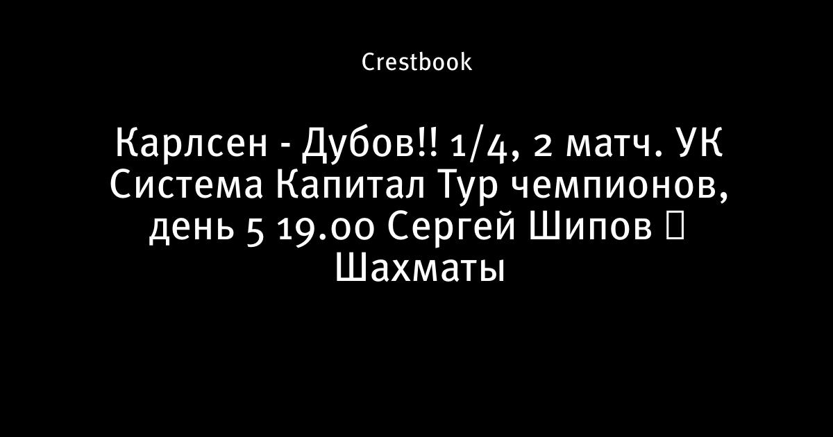 Карлсен - Дубов!! 1/4, 2 матч. УК Система Капитал 🏆 Тур чемпионов, день 5 ⏰ 19.00 🎤 Сергей Шипов ♕ Шахматы