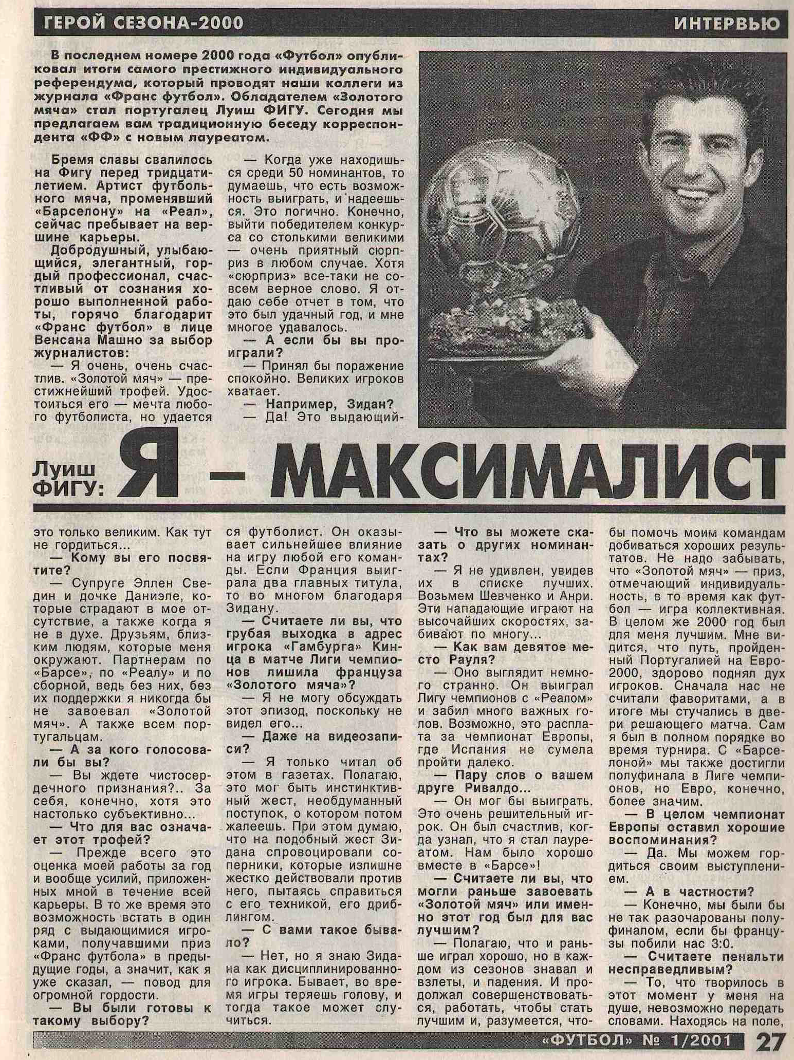 Интервью с Фигу. 2001 год
