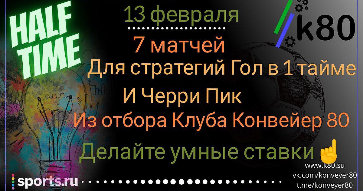 Сегодня Суббота и 7 матчей, из отбора аналитически информационного сервиса Конвейер 80, как обычно, рандомно, выбраны и опубликованы для всех желающих заработать и познакомиться с нами. Средний процент прохода событий, по отборам чуть выше 79% на данный момент. Участники закрытого клуба, зарабатывают, применяя стратегии и алгоритмы на отборах и ботах. Вариантов дохода, достаточно много и каждый может найти то, что ему по душе.