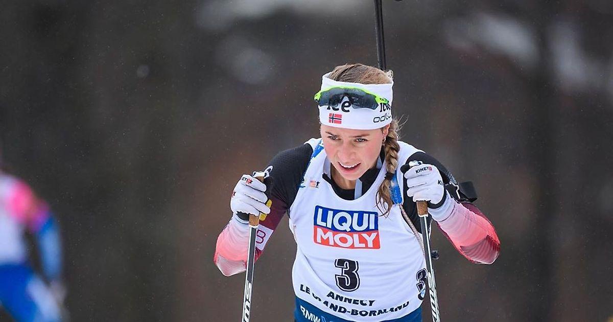Тириль Экхофф была сегодня великолепна и на дистанции, и на огневых рубежах. Безупречная гонка, золотая медаль и преимущество перед француженкой – 12 секунд.