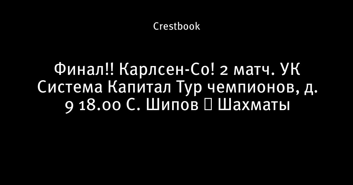 Финал!! Карлсен-Со! 2 матч. УК Система Капитал 🏆 Тур чемпионов, д. 9 ⏰ 18.00 🎤 С. Шипов ♕ Шахматы