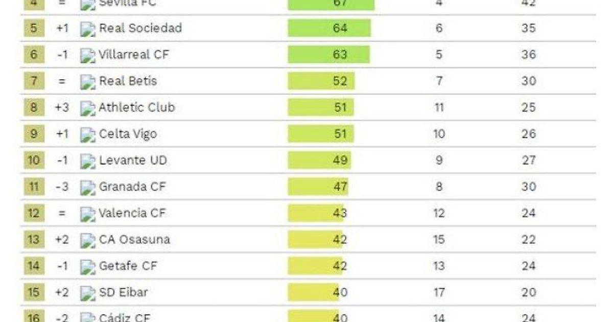 Согласно этой модели «Реал Сосьедад» завершит сезон на пятой позиции с 64 очками.