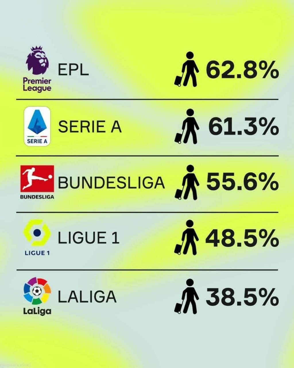 Процентное соотношение иностранцев в «большой пятерке» чемпионатов