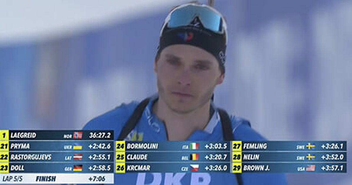 Француз выходил на старт одним из фаворитов – уже двукратный и действующий чемпион в преследовании, бронзовый призер масс-старта-2020 и, возможно, сильнейший финишер в пелотоне. Но не получилось: закрыв первый рубеж на ноль, Жаклен развалился – пять промахов на втором.