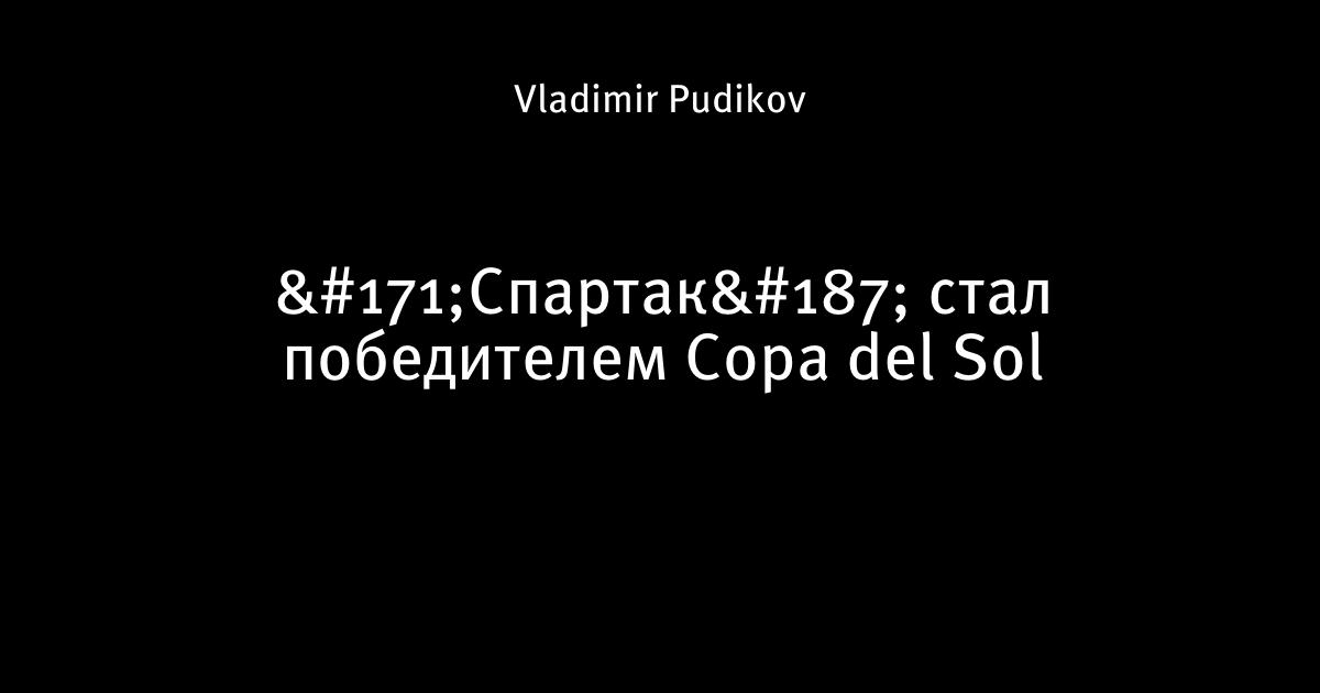 8 февраля 2012, 07:44 «Спартак» стал победителем Copa del Sol Автор Vladimir Pudikov Этот пост опубликован в блоге на Трибуне Sports.ru. Присоединяйтесь к крупнейшему сообществу спортивных болельщиков! Другие посты блога Телевизор 3.0 видео Спартак