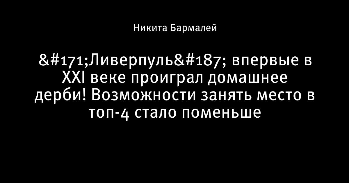 «Ливерпуль» впервые в XXI веке проиграл домашнее дерби! Возможности занять место в топ-4 стало поменьше