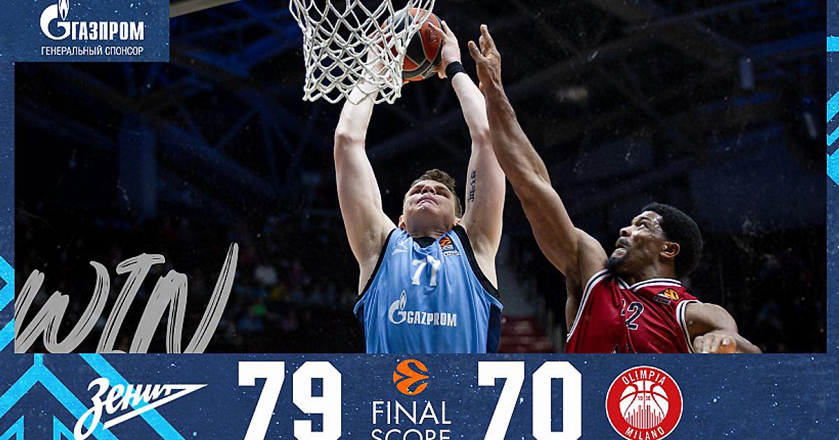 Семь побед в последних восьми матчах — с таким достижением подошёл к игре с «Зенитом» «Милан». Команды встречались не так давно, меньше месяца назад в Италии, тогда в рамках 23-го тура победа осталась за миланцами. Стартовая пятёрка «Армани Эксчейндж» на игру: Кевин Пантер, Калеб Тарчевски, Малкольм Дилэйни, Шейвон Шилдс и Луиджи Датоме. У «Зенита» с первых минут на паркет выходит привычная стартовая пятёрка: Матеуш Понитка, Остин Холлинз, Уилл Томас, Кевин Пангос и Артурас Гудайтис. Гости чувствуют себя как дома с первых секунд матча — Шейвон Шилдс сначала реализует дальний бросок, а затем добавляет к нему бросок со средней — 0:5. Однако меньше минуты потребовалось Артурасу Гудайтису и Кевину Пангосу, чтобы не просто сократить отставание, а вывести команду вперёд: два штрафных и бросок со средней от Артураса — 4:5, двухочковое попадание Кевина — 6:5 и вновь «двушка» Гудайтиса — 8:5. Артурас в первой десятиминутке показал, что матчи против «Армани Эксчейндж» для него принципиальны не только на словах: 6 очков, 4 подбора и блок-шот. В оставшиеся пять минут стартовой четверти «Зенит» не растерял преимущество, несмотря на точные броски ветеранов «Милана» Родригеса и Хайнса. 19:15 — с таким счётом завершаем первую четверть. «+4» превращаются в «+11» к первой половине второй четверти: заряжает команду «трёхой» Билли Бэрон в начале игрового отрезка, радует соскучившихся болельщиков данком Алекс Пойтресс, ещё по «двушке» забрасывают Андрей Зубков и всё те же Бэрон и Пойтресс. Фирменная «трёшка» Риверса делает счёт 33:22. Однако затем, как сказал в перерыве Хавьер Паскуаль, петербуржцы потеряли концентрацию. Майкл Ролл набрал 7 очков, реализовав два броска со средней и попав дальний. Ещё по два очка принесли Шилдс и Родригес, а Мицов забросил «трёху» и дважды был точен на штрафных — 40:38, не получилось удержать преимущество над итальянской командой. Как сказал в перерыве Матеуш Понитка, с командой такого калибра ошибаться нельзя. «Армани Эксчейндж» не упустил своего и в начале второй половины матча: Кевин Пантер в одиночку вывел итальянцев вперё д — 8 очков набрал защитник миланской команды: два броска со средней, штрафной и трёхочковый — 42:46. Усилиями Артураса Гудайтиса и Билли Бэрона вновь вышли вперёд сине-бело-голубые — 47:46. Затем до конца четверти игра шла очко за очком:попеременно выводили свои команды вперёд: у «Армани Эксчейндж» Шилдс, Пантер и Хайнс, у «Зенита» Билли Бэрон и Алекс Пойтресс. 54:54 — равный счёт перед заключительной десятиминуткой. По такому же сценарию продолжилась игра и в четвёртой четверти: сначала Шилдс двухочковым попадание довёл свой личный счёт очков до 13, на этот бросок ответил ему Уилл Томас в проходе — 56:56. После очередной «двушки» Дилэйни свой шанс использовал Алекс Пойтресс — 58:58, а Уилл Томас вывел с прохода «Зенит» вперёд — 60:58, после чего Этторе Мессина взял тайм-аут. Только «двушки» летели у команд в этой четверти: сравнял Шейвон Шилдс после тайм-аута, но дуэт Пангос-Гудайтис вновь отправил «Милан» на перерыв за 3 минуты до конца матча, нарастив своими бросками преимущество в 6 очков — 68:62. Наконец-то залетает «трёха» в этой четверти. Автор броска и преимущества в +9 до конца матча — Кевин Пангос. Удержали петербуржцы это преимущество благодаря попаданиям Кевина Пангоса, Артураса Гудайтиса и Матеуша Понитки — 79:70. 