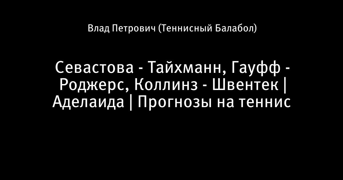 Севастова - Тайхманн, Гауфф - Роджерс, Коллинз - Швентек | Аделаида | Прогнозы на теннис