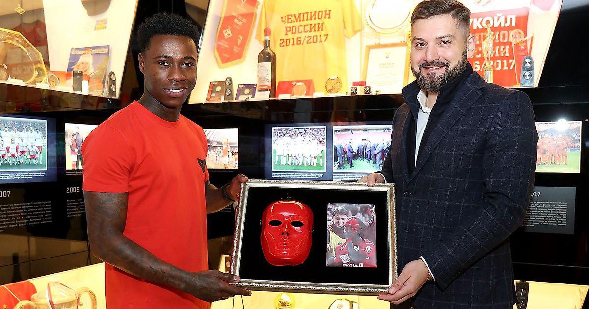 Квинси с радостью посетил церемонию передачи, пересмотрел свои голы за «Спартак» и фотографии золотого сезона, а также рассказал историю маски.