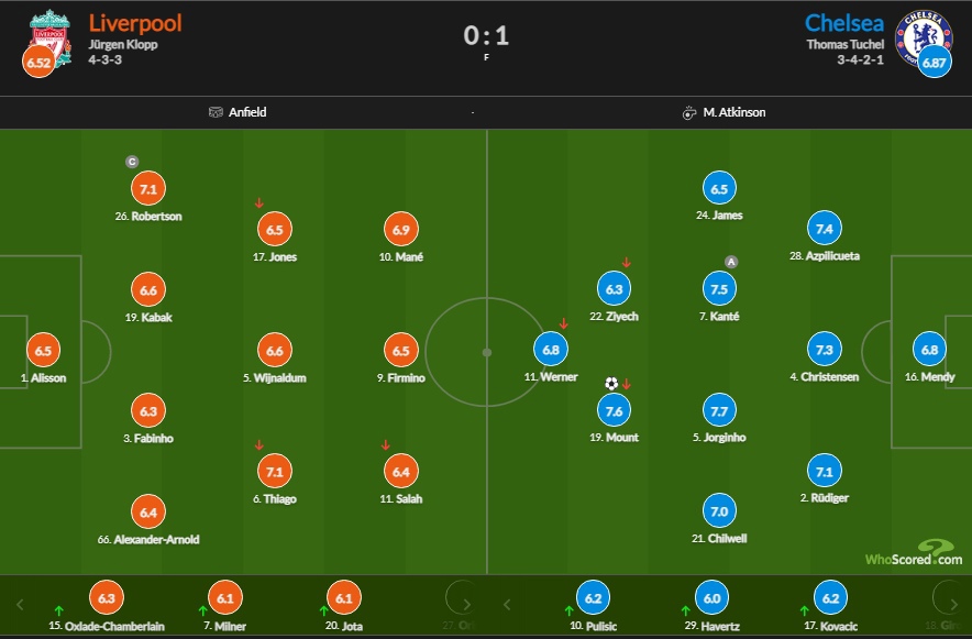 «Ливерпуль» дома уступил «Челси» и проиграл пятый матч на "Энфилде" подряд. И хотя впервые "красные" пробили в створ ворот только на 85-й минуте, а также пропустили, средние оценки от портала WhoScored для "Ливерпуля" и "Челси" не слишком отличаются.