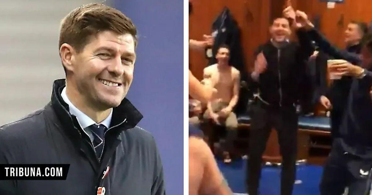 Стивен Джеррард присоединился к безумным празднованиям в раздевалке «Рейнджерс» в одном очке от первого титула за 10 лет