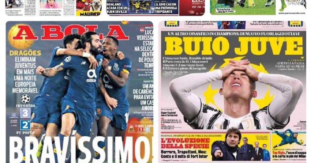 Думаю, в переводе этот заголовок не нуждается. Португальская пресса в восторге от выступления своей команды. Считают, что «Порту» превосходил итальянских чемпионов на протяжении обоих матчей. Только лишь численное превосходство склонило чашу весов в сторону хозяев, но этого было недостаточно. В успехе «сине-белых» выделяется рука Сержиу Консейсао, который полностью выиграл тактическую битву у Андреа Пирло. Итальянец не смог предложить ничего нового и был, в некоторой степени, предсказуемым. Oднако, уже на следущий день после триумфа, Консейсао отметил, что в следующем матче ЛЧ в составе «Порту» не сможет принять участие герой минувшего вечера Сержиу Оливейра из-за перебора карточек, а он является ключевой фигурой в схеме португальской команды. В текущем сезоне на счету полузащитника 17 голов в 36 матчах. Так же, команда не сможет рассчитывать и на антигероя прошлого матча - Мехди Тареми.