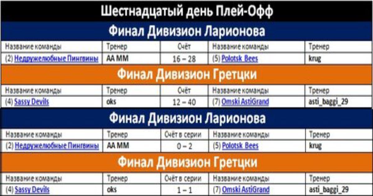 Продолжаем следить за финальными играми дивизионов. Вопреки мнению многих экспертов krug одержал победу и во второй игре. Для выхода в Большой Финал ему достаточно одержать две победы в пяти играх. Вполне выполнимая задача. Asti взял реванш за поражение в первой игре серии. Борьба за чемпионство в дивизионе Гретцки обещает быть очень жаркой.