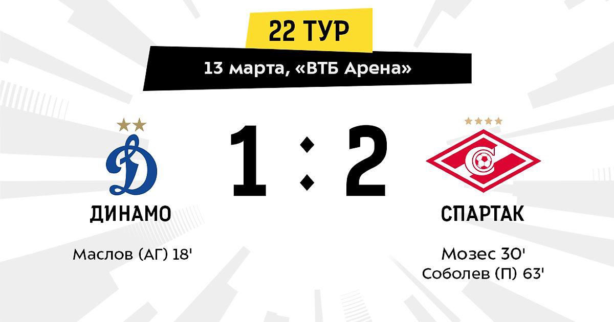«Спартак» одержал победу над «Динамо» - 2:1 и вышел на второе место в чемпионате.