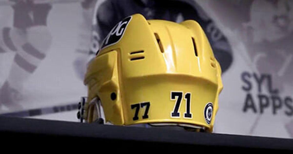 Малкин вышел на матч в шлеме с 77-м номером – в память об игроке МХЛ, который умер после попадания шайбы в голову