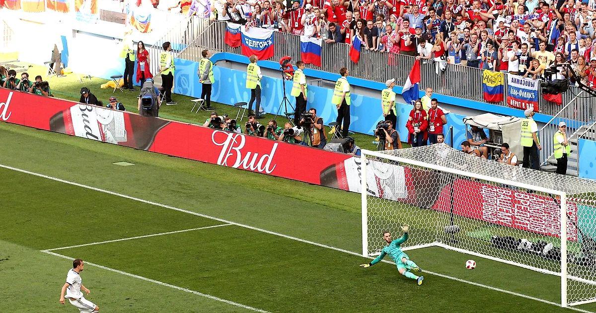 Пробежимся по остальным этапам карьера бомбардира: Томь - 5 ударов с точки (4 гола); Ростов - 9 попыток (7 голов); Арсенал Тула - единственный нереализованный; Сборная - 5 пенальти (не забил в матче против с Сан-Марино, но тут же добил мяч в ворота); Зенит - 19 (14 голов). То есть процент реализованных - 73,8%, что является качественным показателем. И вообще, ЧМ-2018 запомнился нам победой над Испанией, в матче с который были "нога бога" и забитый в основное время пенальти (его автором являлся Дзюба). Поэтому чисто статистически мы можем доверить Артему 11-ти метровый.