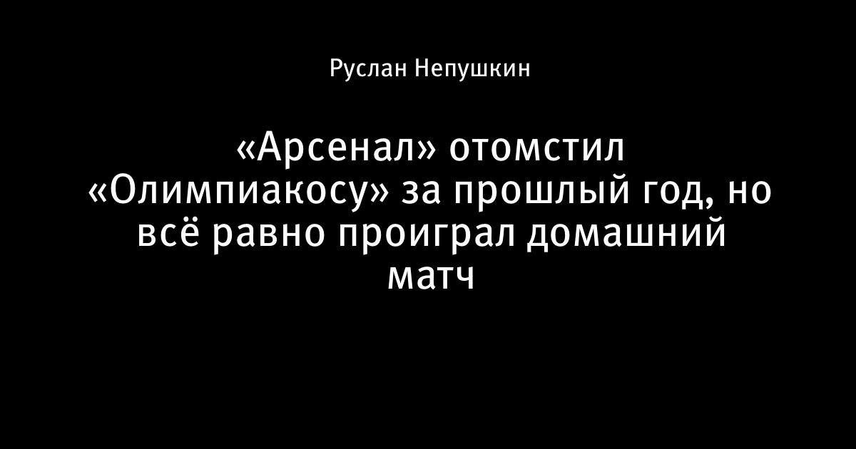 «Арсенал» отомстил «Олимпиакосу» за прошлый год, но всë равно проиграл домашний матч