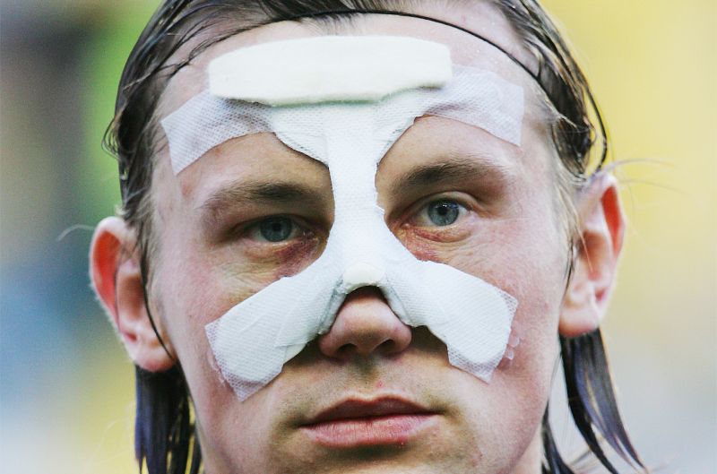 «Я буду играть даже без носа». На финал Кубка УЕФА Олич вышел с маской, которая была сделана из гостиничных карточек