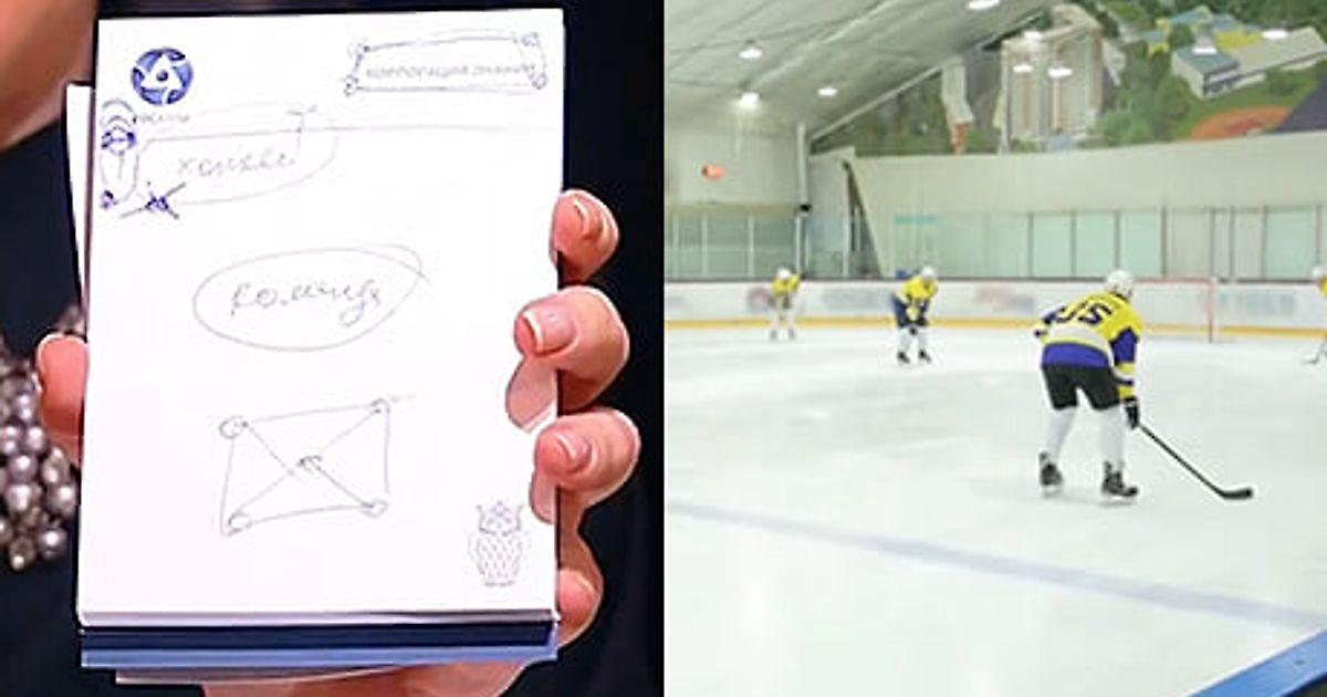 Журналисты «Что? Где? Когда?» сняли видеосюжет для вопроса из города Борисов: «Когда хоккейной команде во что бы то ни стало нужно забить, тренеры порой используют такую расстановку.