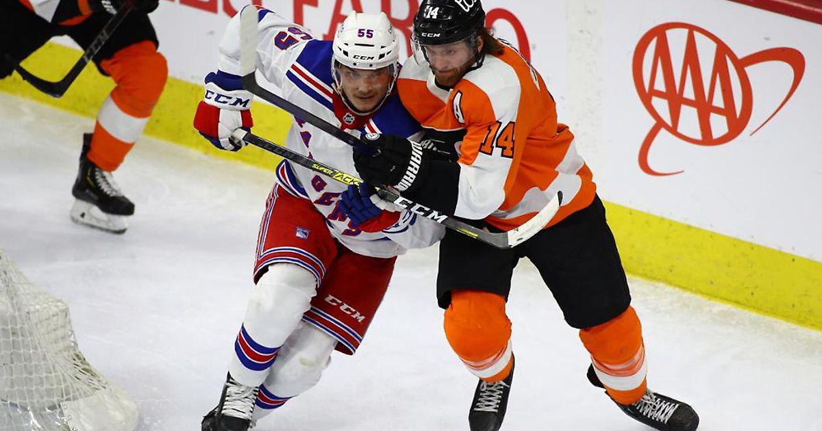 "Филадельфия Флайерс"-"Нью-Йорк Рейнджерс" 3:8.Мика Зибанежад набрал 6 очков (3+3),Адам Фокс отдал 5 результативных передач,Райан Стром набрал 4 очка (1+3),Павел Бучневич забросил 2 шайбы,Артемий Панарин отдал результативную передачу,Игорь Шестёркин отразил 41 бросок.У хозяев Кевин Хэйз и Шон Кутюрье набрали по 2 очка (1+1),Шейн Гостибир отдал 2 результативные передачи.В первом периоде Николя Обе-Кубель подрался с Бренданом Смитом,в третьем периоде Самуэль Морин подрался с Бренданом Лемье."Рейнджеры" выиграли 3 игру подряд.