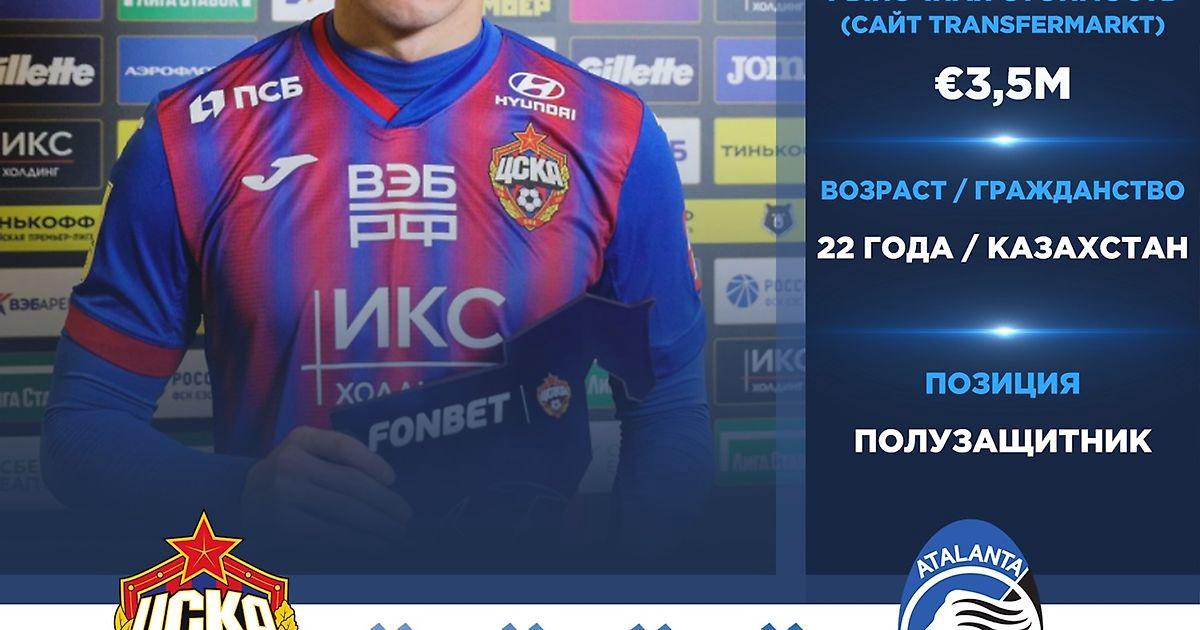 Агент Зайнутдинова подтвердил, что игрок ЦСКА входит в шорт-лист «Аталанты»