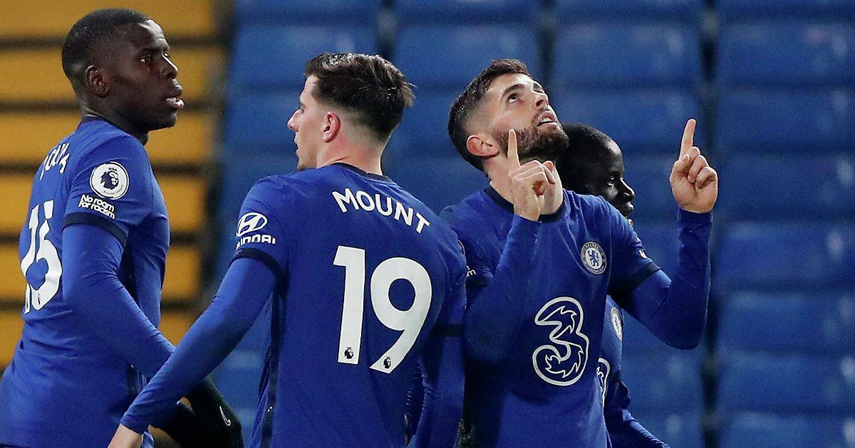 Вскоре Жоржиньо забежит за спину Тьяго, тот среагирует, одновременно с этим Маунт забежит в глубину, под линию передачи, которою открыл Тьяго, среагировав на передвижение Доржиньо. Идеальный пример командной сыгранности и крутой манипуляции над блоком соперника. Вот что вышло в итоге: