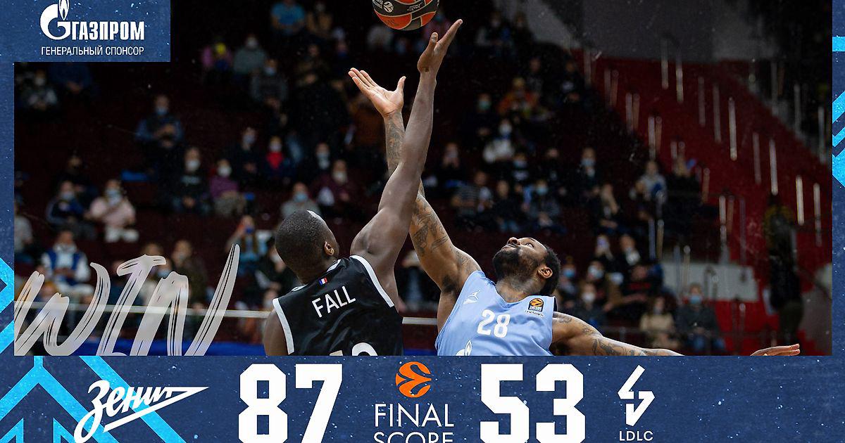 АСВЕЛ потерял шансы на выход в плей-офф, «Зениту» же просто необходима победа в родных стенах, чтобы вернуться в восьмёрку сильнейших команд Евролиги. С первых секунд у хозяев вышли Шарль Каюди, Антуан Дио, Мустафа Фалль, Гершон Ябуселе и Норрис Коул. Хавьер Паскуаль выпустил в стартовой пятёрке»: Кей Си Риверса, Кевина Пангоса, Уилла Томаса, Матеуша Понитку и Тарика Блэка. Как говорил перед матчем главный тренер «Зенита» Хавьер Паскуаль, сегодняшняя игра для петербуржцев — финал. Обменялись соперники штрафными бросками на старте матча: Остин Холлинз попал 2 из 3, Ябуселе — 1 из 2. После подбора в защите от Кевина Пангоса в атаке наш капитан реализовал «трёшку», а в следующих атаках Блэк и Томас принесли ещё по два очка. АСВЕЛ забросил с игры лишь на четвёртой минуте матча — Фалль после подбора в нападении отметился «двушкой» из-под кольца. Ещё двумя двухочковыми попаданиями порадовал болельщиков Тарик Блэк в первой четверти, оба — с передач Пангоса. Сам же Кевин тоже отметился броском с прохода. 20:15 — стараемся наращивать преимущество с первой десятиминутки. Четыре потери мяча совершили петербуржцы во второй четверти, пока у АСВЕЛа было всего 3 потери за всю первую половину матча. Французы догоняли «Зенит» усилиями Бако, Уолтона и Ховарда и к п минуте четверти набрали 10 очков и сравняли счёт — 25:25. А на пятой минуте матча после двух штрафных Лайти и вовсе вышли вперёд — 28:29. Благодаря восьми очкам Билли Бэрона — две «трёхи» и два штрафных, а также «двушке» Пойтресса сине-бело-голубые ушли на перерыв с небольшим преимуществом в четыре очка — 41:37. Хавьер Паскуаль отметил, что в целом игра команды его устраивает, но необходимо улучшить некоторые компоненты игры, в частности, подборы в защите. И, видимо, разговор в раздевалке дал свои плоды в третьей четверти — за четыре минуты «Зенит» позволил гостям набрать всего 2 очка — Норрис Коул отличился со средней. У хозяев же полетели «трёхи»: две от Билли Бэрона и одна от Уилла Томаса. Прибавить к этому броски со средней от Блэка и Пангоса и два штрафных Понитки и преимущество «Зенита» выросло с 4 очков до 17 — 56:39. Два броска со средней от Лайти и Бако — всё, чем смог похвастаться АСВЕЛ до конца третьей четверти. «Зенит» же благодаря шести очкам Гудайтиса и четырём очкам Пангоса ушёл в отрыв — 66:43 перед заключительной четвертью. По два очка Томаса, Холлинза и Пойтресса, трёхочковых Остина и данк в следующей же атаке, затем ещё один дальний бросок и преимущество «Зенита» к седьмой минуте четверти составило 32 очко! 83:51. Андрей Зубков из-под кольца увеличил его до +34, Кей Си Риверс — до +36. Два штрафных Уолтона на результат не повлияли — 87:53. Главный тренер БК "Зенит" Хавьер Паскуаль: — После перерыва мы контролировали ритм игры, делали меньше потерь, контролировали подборы в защите. Ребята сыграли сегодня великолепно в защите и превосходно в нападении. Мы были очень эффективны в начале третьей четверти. В предыдущих играх такого не было, из-за этого мы нервничали в некоторых ситуациях. Однако сегодня эти ребята заслужили победу, я очень рад за всех них. У нас всё ещё две игры дома, мы идём шаг за шагом. Скажем так, мы выиграли четвертьфинал сегодня. Нам необходимо выиграть полуфинал и финал, тогда и посмотрим, как будут обстоять дела. Капитан БК "Зенит" Матеуш Понитка: — Мы должны были продолжать оказывать 